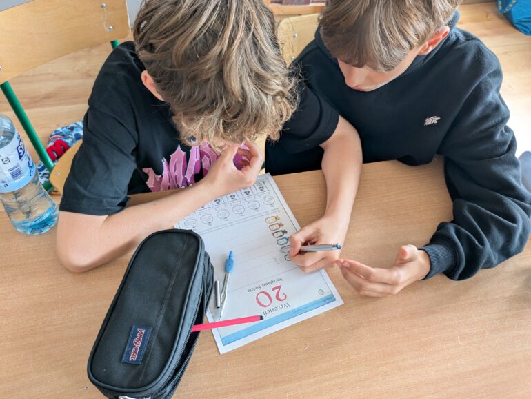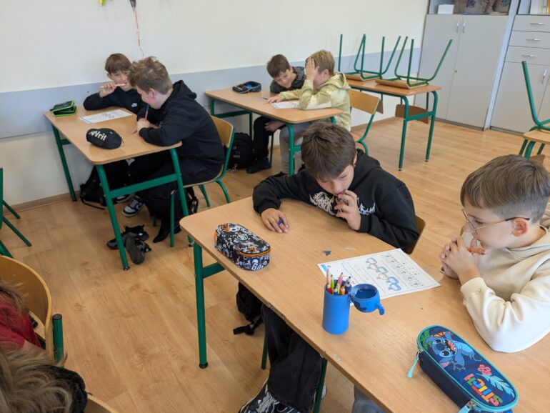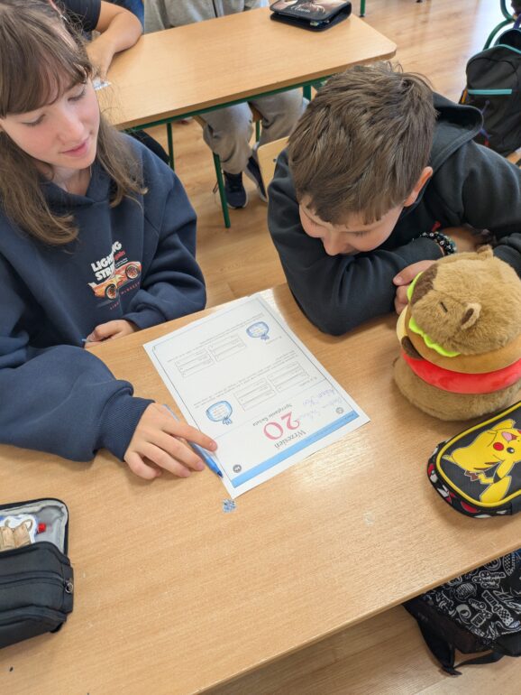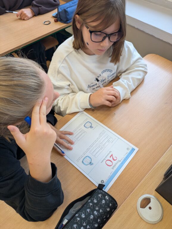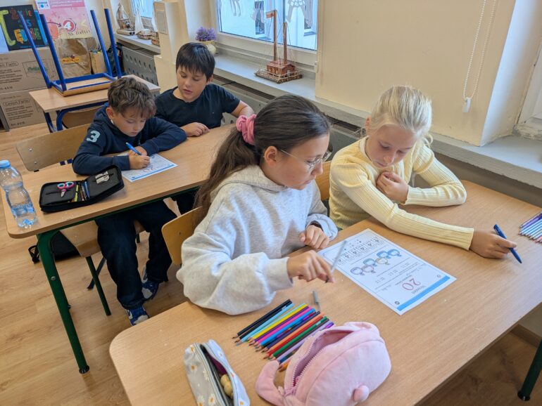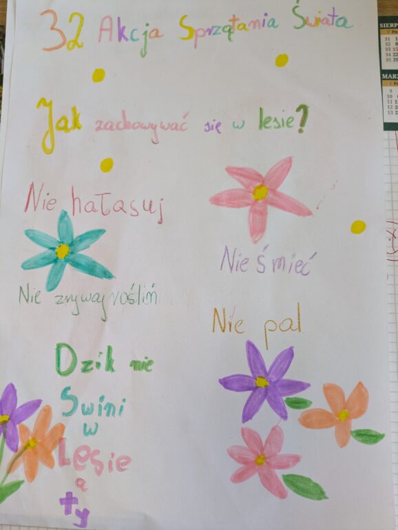Sprzątanie świata to dobra okazja, by uświadomić uczniom palący problem stale rosnących gór śmieci. Z tej okazji uczniowie naszej szkoły na lekcjach matematyki rozwiązywali zadania o tematyce związanej z segregacją odpadów. Zadania  dotyczyły kolorowania odpowiednich pojemników na śmieci po wykonaniu poprawnych obliczeń do wskazanych działań oraz poprawnego obliczenia ilości zebranych worków na śmieci. Zadania matematyczno – ekologiczne zostały uzupełnione o informacje dotyczące segregacji śmieci, a dzieci wykonały plakaty ze wskazówkami dla swoich rówieśników.