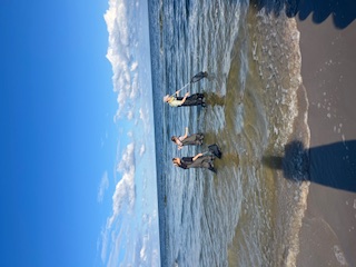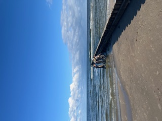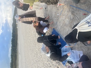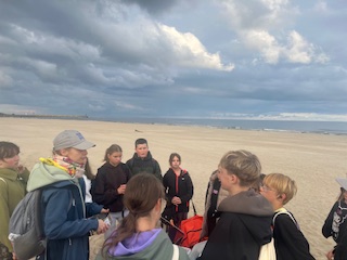 Uczniowie klasy 5A wraz z opiekunami panią M. Stasiak i panią M. Barańską uczestniczyli w projekcie „Dziwny jest nasz Bałtyk”, finansowanym przez Fundację Orlen dla Pomorza. Był on prowadzony w ciągu 2 dni – 1-2 października 2025 r. Uczniowie mieli zajęcia o geografii, biologii i o ochronie środowiska Morza Bałtyckiego. Odbyły się także zajęcia terenowe przy cieku wodnym w Łebie – połączenie rzeki Chełst i rzeki Łeby w kanale portowym oraz na plaży. Polegały one na pomiarach temperatury i zasolenia wody.Uczniowie wraz z edukatorami dr Tycjanem Wodzinowskim z Morskiego Instytutu Rybackiego – Państwowego Instytutu Badawczego oraz dr Tatianą Guellard z Sekcji Edukacji Akwarium Gdyńskiego MIR-PIB wchodzili do wody w woderach aby zrobić zaciągi z dna morza. W ramach projektu uczniowie raz w miesiącu będą dokonywać pomiarów zasolenia i temperatury wody w Bałtyku.