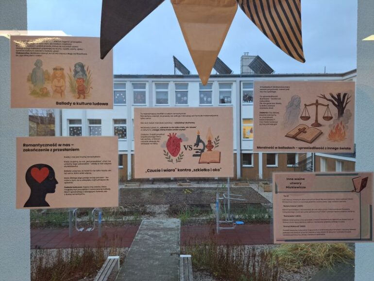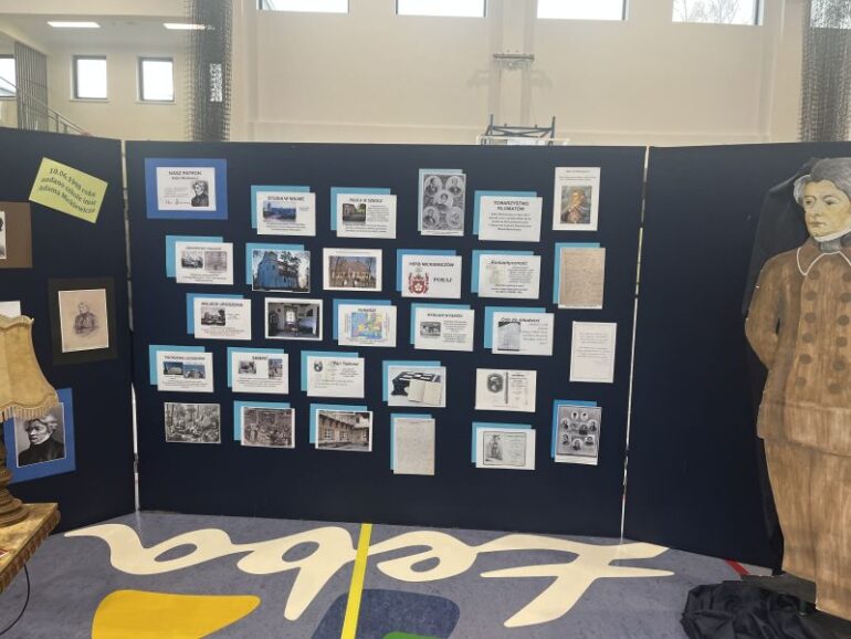 To już tradycja, że w grudniu w naszej szkole obchodzimy Dzień Patrona. Właśnie w grudniu, ponieważ Adam Mikiewicz przyszedł na świat w Wigilię w roku 1798. Podczas uroczystości przypomnieliśmy sobie sylwetkę poety oraz epokę, w której tworzył. Wysłuchaliśmy też autorskiej ballady “Leśna drożyna” napisanej przez naszą uczennicę – Zuzię Cienką – zainspirowaną twórczością poety. Na koniec cała społeczność szkolna zatańczyła poloneza poprowadzonego przez Dyrektora szkoły – Pana Macieja Barańskiego. Z okazji tego święta uczniowie mogli wziąć udział w dwóch konkursach: recytatorskim, interpretując wybrany przez siebie tekst literacki autorstwa wieszcza oraz plastycznym – na witraż związany z twórczością A. Mickiewicza. W konkursie recytatorskim pierwsze miejsce zajęła Lena Ignatiuk z klasy 6b, a wyróżnienie otrzymała Blanka Kamola z klasy 6b.Natomiast w konkursie plastycznym nagrody otrzymali: Kostiantyn Tsymbaliuk z klasy 2 a, Antonina Maciejewska z klasy 1b oraz Iga Kaczmarczyk z klasy 7b.Życie i twórczość naszego patrona są nieodłączną częścią historii Polski. Jego dzieła stanowią inspirację dla twórców współczesnych, których utwory mieliśmy okazję wysłuchać podczas apelu. Mamy nadzieję, że pamięć o Adamie Mickiewiczu na długo pozostanie w naszych sercach.