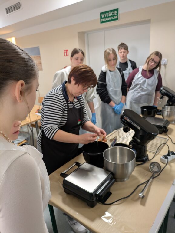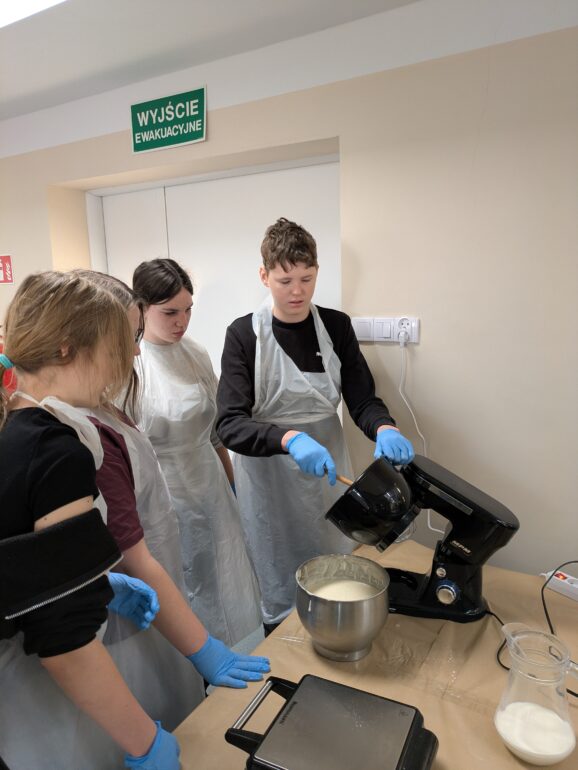 Tym razem z okazji dnia placków uczniowie klasy 7b udali się na warsztaty kulinarne do stołówki szkolnej, w ramach realizacji projektu “Ja w przyszłości”.