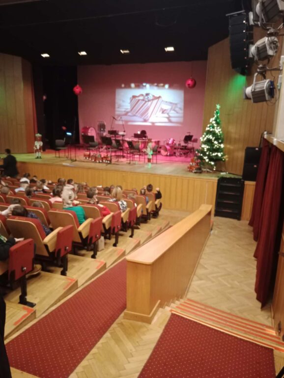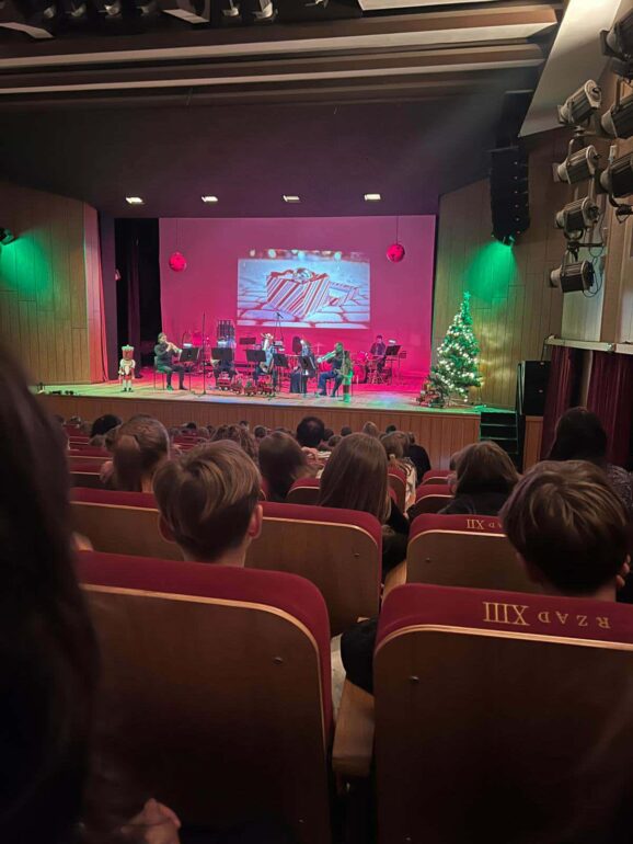 W dniu 08.12.2025 r. klasy VIa i VIIa wraz z opiekunami wyjechały na wycieczkę do Słupska w ramach przedsięwzięcia “Wyjście z klasą”. Uczestniczyły w lekcji z filharmonią pt.”Kolędnicy w kwintecie (i ten szósty, który nie może usiedzieć w miejscu). Zespół pięciu muzyków (kwintet) wykonał najbardziej znane kolędy. Było wspólne śpiewanie i zagadki muzyczne. Świąteczny nastrój ogarnął nas wszystkich. Ten dzień zakończył się smacznym obiadem w restauracji “Maja”. W radosnym, świątecznym nastroju wróciliśmy do Łeby.