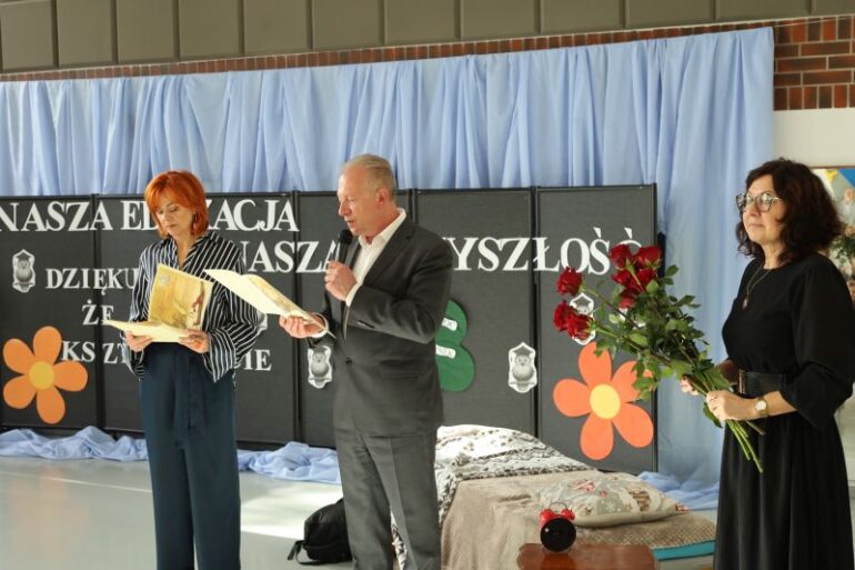Na zakończenie apelu wręczono nagrody i podziękowania nauczycielom, którzy w szczególny sposób zasłużyli się w pracy dydaktyczno-wychowawczej. Cała uroczystość przebiegła w miłej i podniosłej atmosferze, przypominając wszystkim, jak ważna jest rola edukacji i osób ją tworzących.