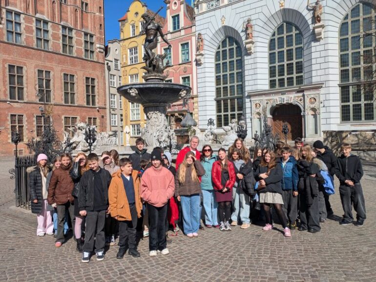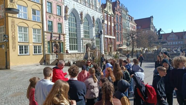 Korzystając z pięknej pogody, udaliśmy się również na spacer po Długim Targu, sercu gdańskiej Starówki. To miejsce, gdzie dzieci mogły poczuć atmosferę dawnych czasów, spacerując wśród kolorowych kamienic i wsłuchując się w opowieści o dawnych mieszkańcach miasta.